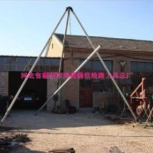 三角架立桿機說明:鋁合金立桿機采用天津鋁合金廠生產的高級原材料,通過本廠技術人員多年的開發,研制,現已正式投放市場.該產品體積小,重量輕,應用靈活,方便保險,系數高,解決了吊車不能進行的場地及人工立桿危險性大的難題(市區胡同或半山區丘陵地帶施工)更能體現其特點,整套立桿過程只需幾個人在短暫的十幾分鐘內完成三角架立桿機操作規程: 1支起三角架立桿機,中間垂直點正對挖好的線桿坑 2用油絲套住線桿,套在線桿的4.5米處(10米線桿)5.3米處(12米桿) 3人工搖動穩機手柄,把線桿粗頭朝下,垂直吊起地面后放如坑內 4兩棵輔桿(12)支起后,必須平行和主桿成為等腰三角形.兩棵輔桿支撐點**大不能超過3.5-4