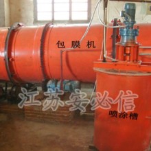 8、回轉式包膜機由螺旋輸送機、攪拌槽、油泵、主機等組成用粉體撲粉或液體涂膜工藝,能有效防止復合肥料的結塊,主機內采用耐酸不銹鋼。