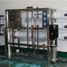 原水(設有壓力保護)→增壓泵(一用一備)→砂過濾器→炭過濾器→硬化器(根據地區不合選用)→ 緊密過濾器(或稱保安過濾器)→兩頭水箱→RO前水泵→緊密過濾器(或稱保安過濾器)→RO高壓泵→RO反滲透系統→RO水箱→RO水增壓泵→終端緊密過濾→設備用水(水質可以達到5-10μs/ ㎝以下,25 ℃)