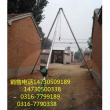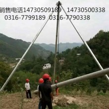 1支起三角架立桿機,中間垂直點正對挖好的線桿坑