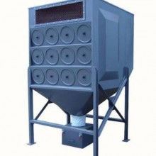 脈沖除塵器主要由上箱體、中箱體、灰斗、進風均流管、支架濾袋及噴吹裝置、卸灰裝置等組成。含塵氣體從除塵器的進風均流管進入各分室灰斗,并在灰斗導流裝置的導流下,大顆粒的粉塵被分離,直接落入灰斗,而較細粉塵均勻地進入中部箱體而吸附在濾袋的外表面上,干凈氣體透過濾袋進入上箱體,并經各離線閥和排風管排入大氣。隨著過濾工況的進行,濾袋上的粉塵越積越多,當設備阻力達到限定的阻力值(一般設定為1500Pa )時,由清灰控制裝置按差壓設定值或清灰時間設定值自動關閉一室離線閥后,按設定程序打開電控脈沖閥,進行停風噴吹,利用壓縮空氣瞬間噴吹使濾袋內壓力聚增,將濾袋上的粉塵進行抖落(即使粘細粉塵亦能較徹底地清灰)至灰斗中,由排灰機構排出。