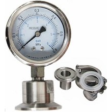 不銹鋼衛生型隔膜壓力表是由不銹鋼壓力表表頭與衛生型隔膜隔離器組成的一個組合型產品。衛生型隔膜壓力表具有現場裝拆快捷方便、不易污染、容易清洗、安全可靠的安全等**點。能滿足藥品生產質量規范(GMP)的要求。在制藥、食品、飲水、水處理等行業對儀表有衛生要求的工藝流程中得到廣泛應用。
