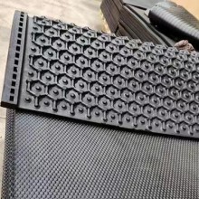 性能特點:1)產品表面有分布均勻的球狀突起、起防滑按摩作用;2)下表面為帶狀溝槽,增加與地面的摩擦,同時能及時排除污水,保持畜舍內的干燥;3)產品有防滑、防靜電、隔涼、隔熱、易清洗、易更換,衛生、防疫的特點;4)使用壽命10年以上